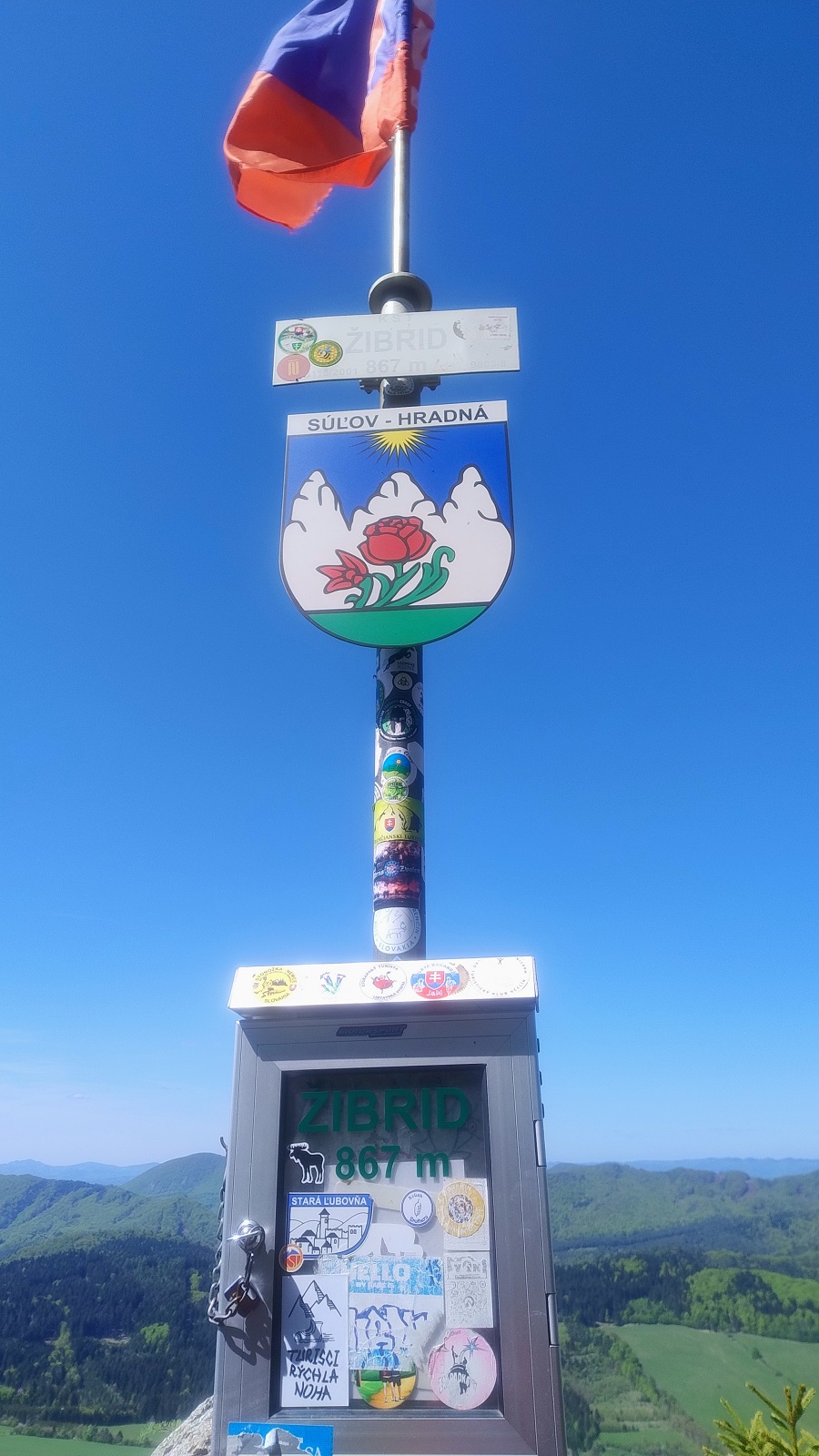 stožiar so slovenskou vlajkou, ktorú vidno už